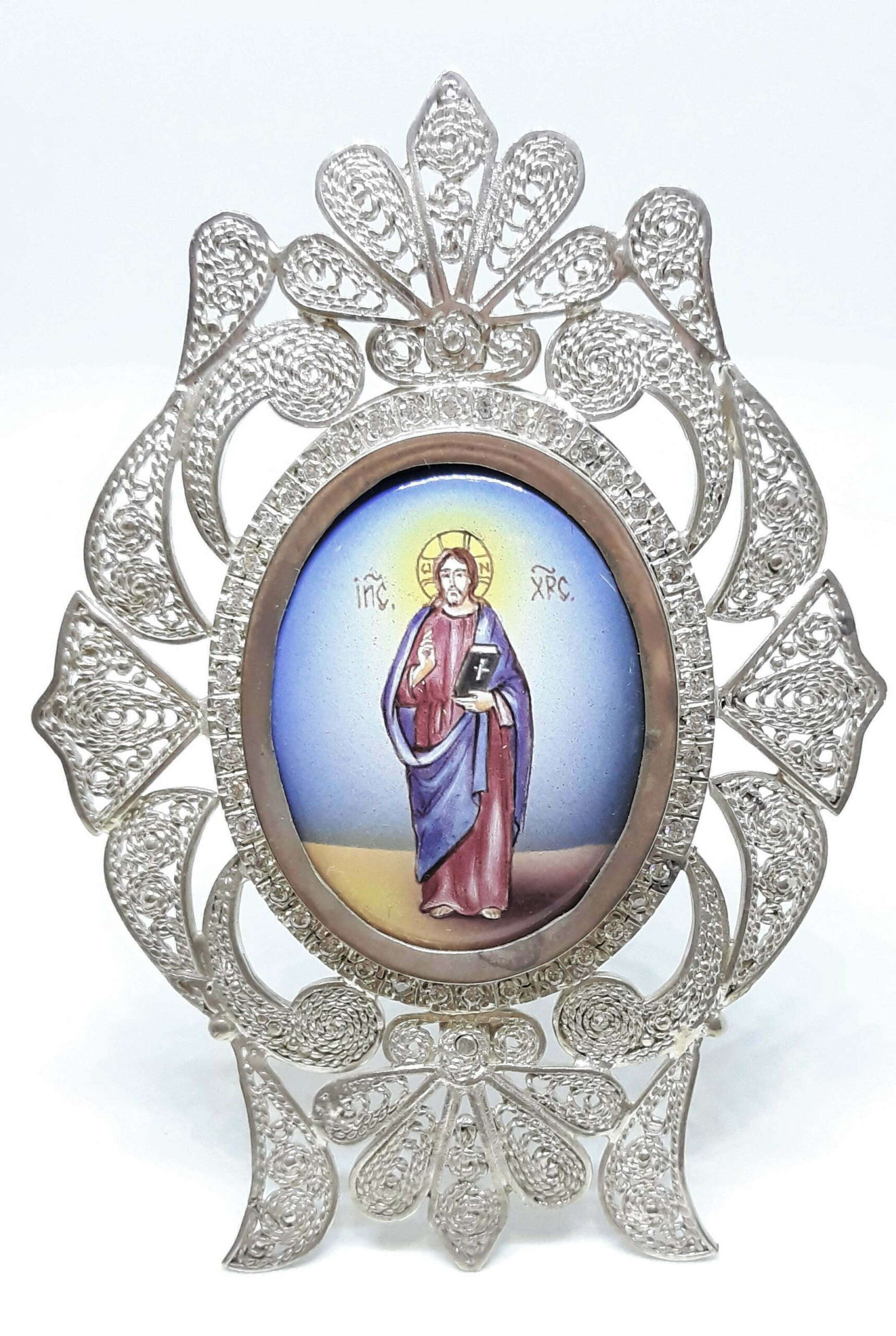Handcrafted silver 970 desktop byzantine style icon with enamel icon