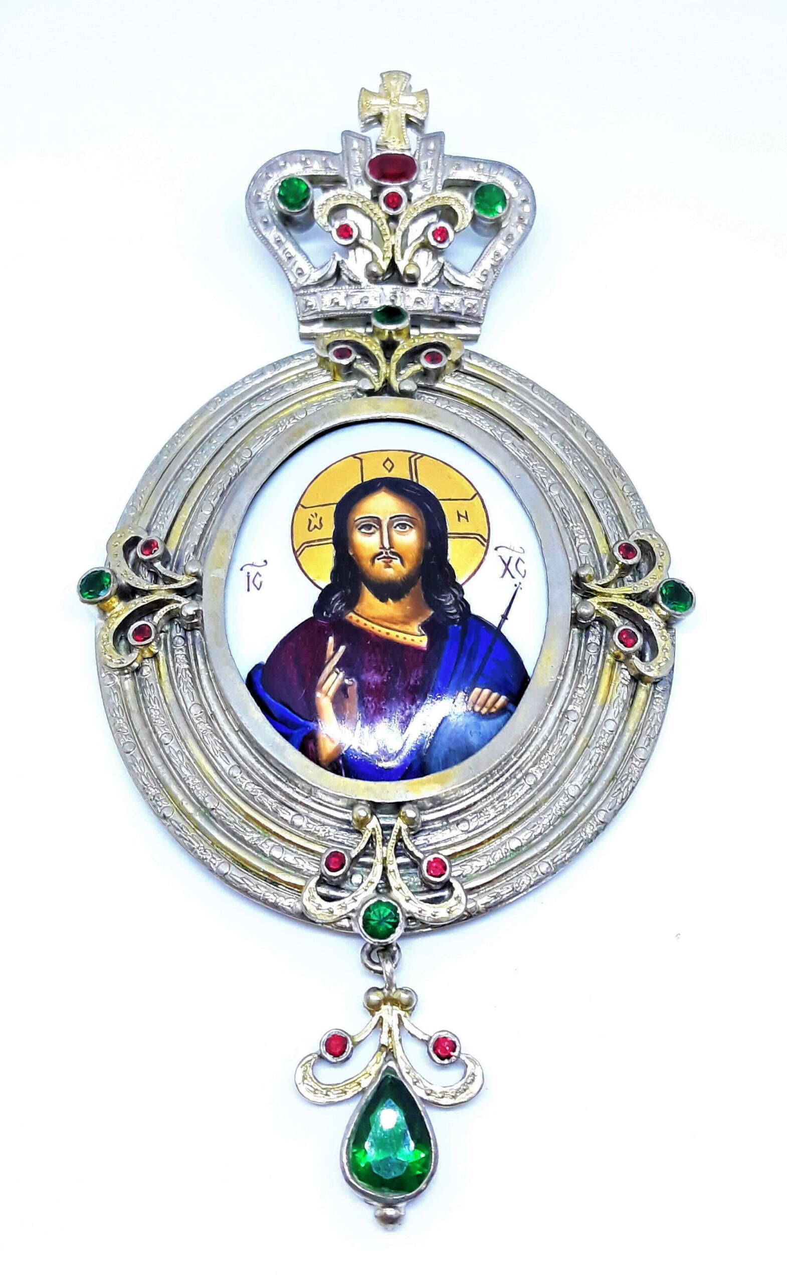 Handcrafted silver 970 orhtodox engolpion with enamel icon