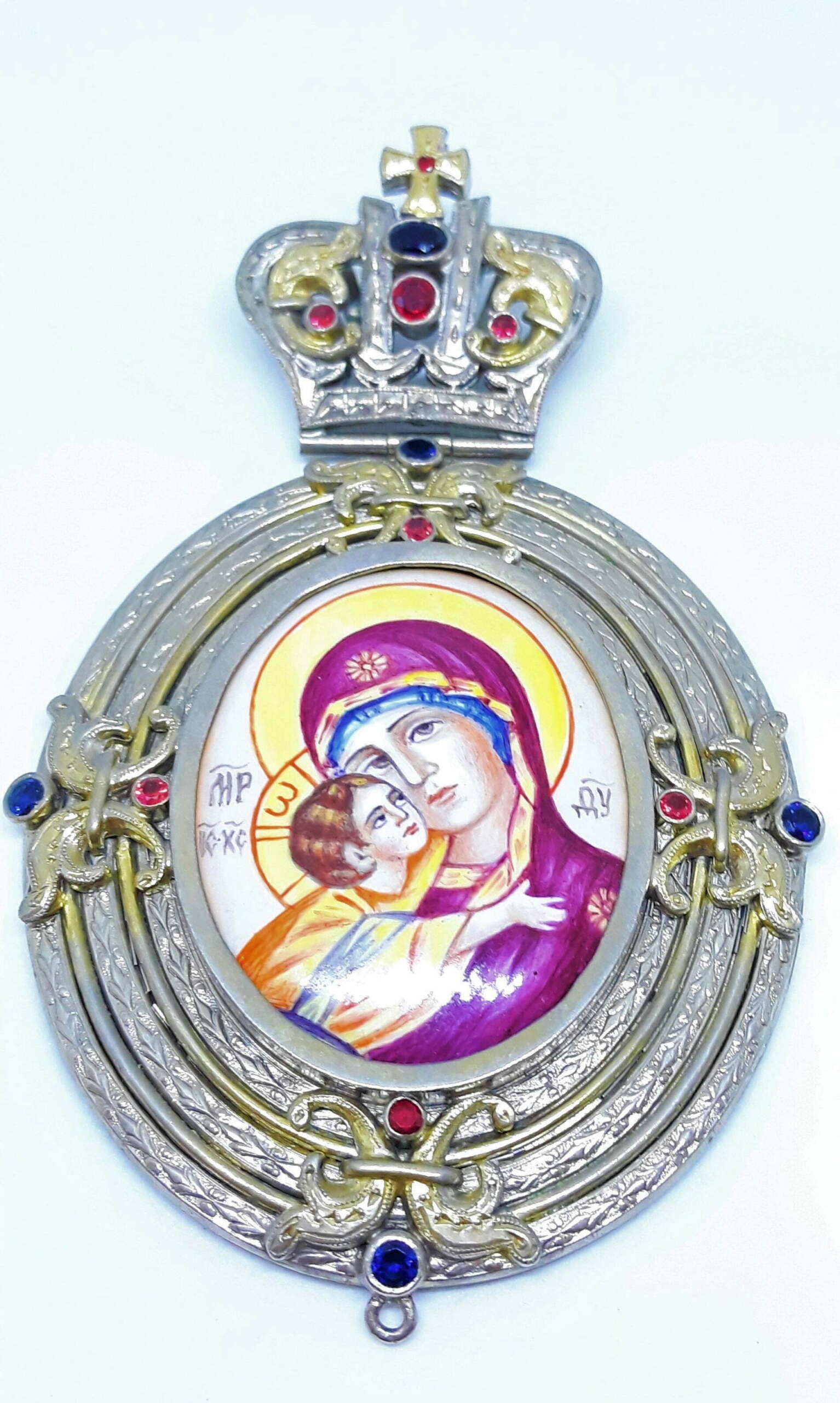 Handcrafted silver 970 orhtodox engolpion with enamel icon
