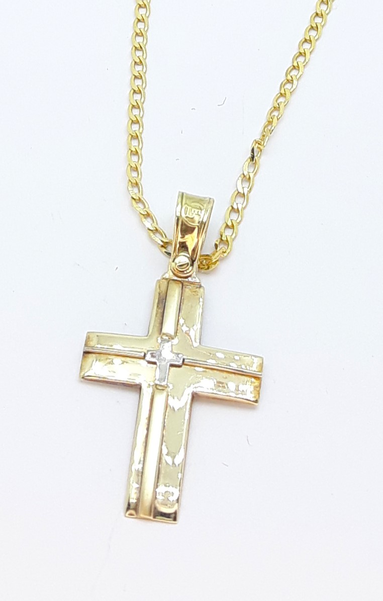Handcrafted cross bicolor 14 carats