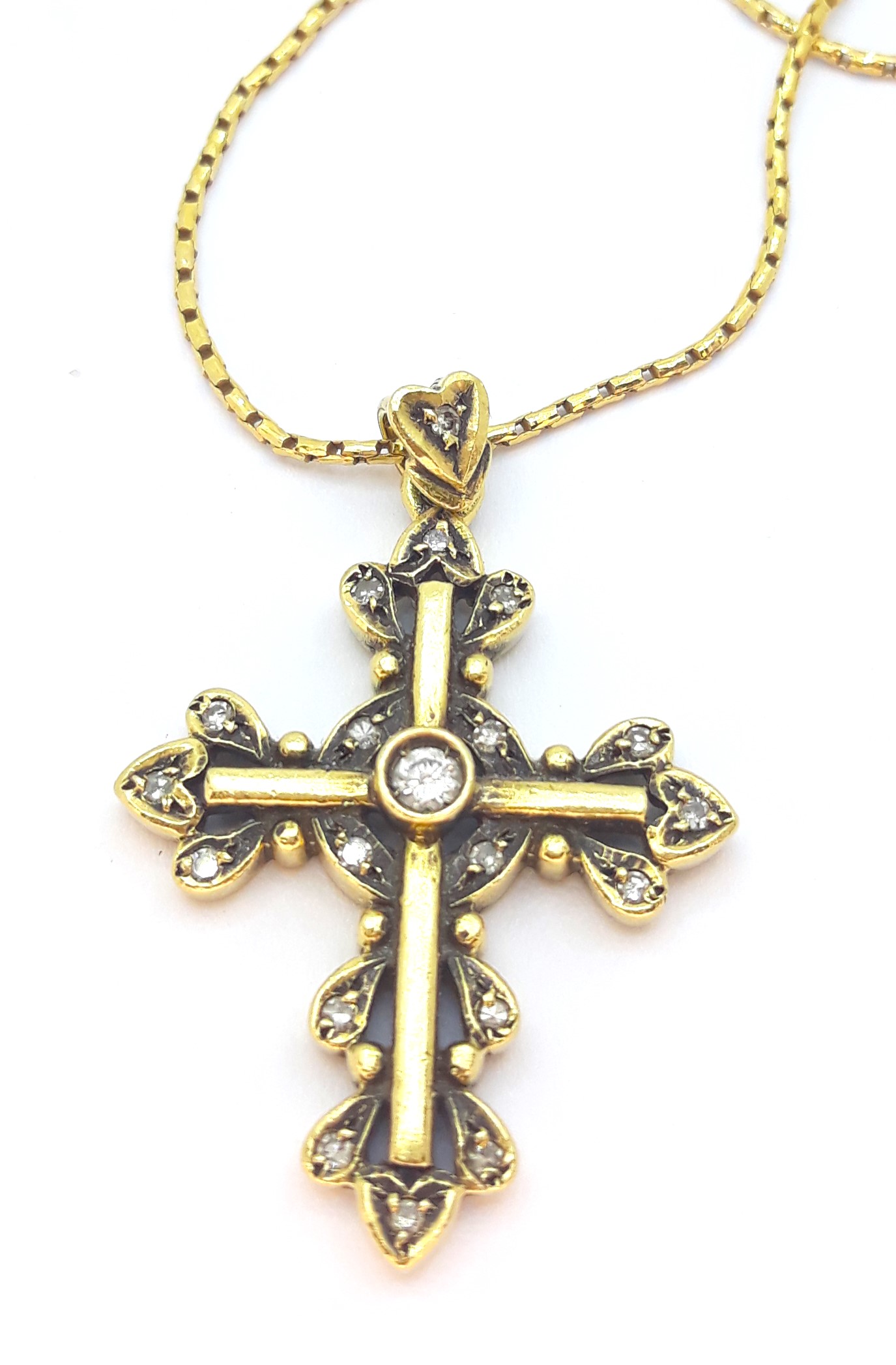 Χειροποίητος σταυρός 18 καράτια με μπριγιάν
