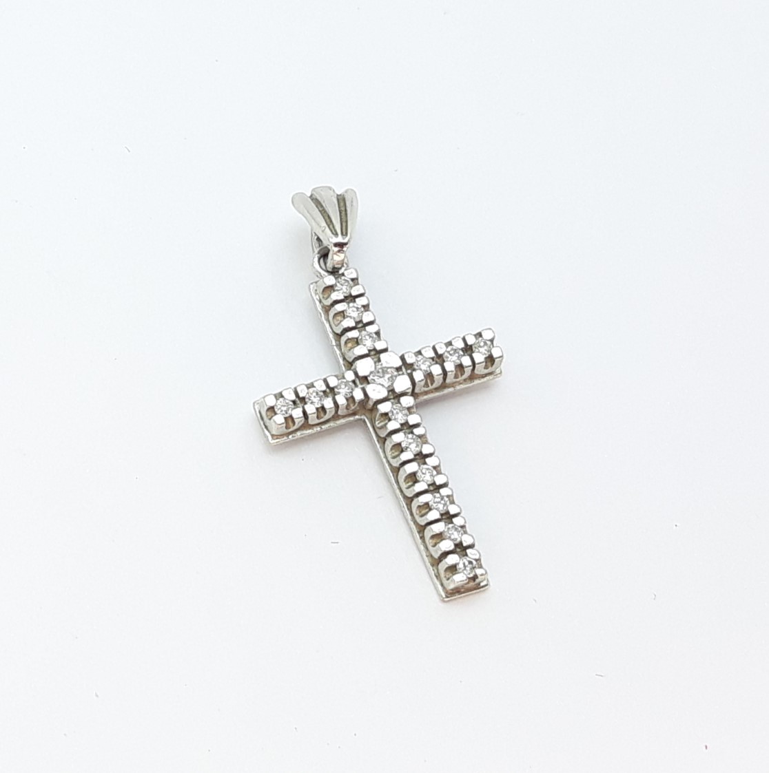 χειροποίητος σταυρός λευκόχρυσος με μπριγιάν